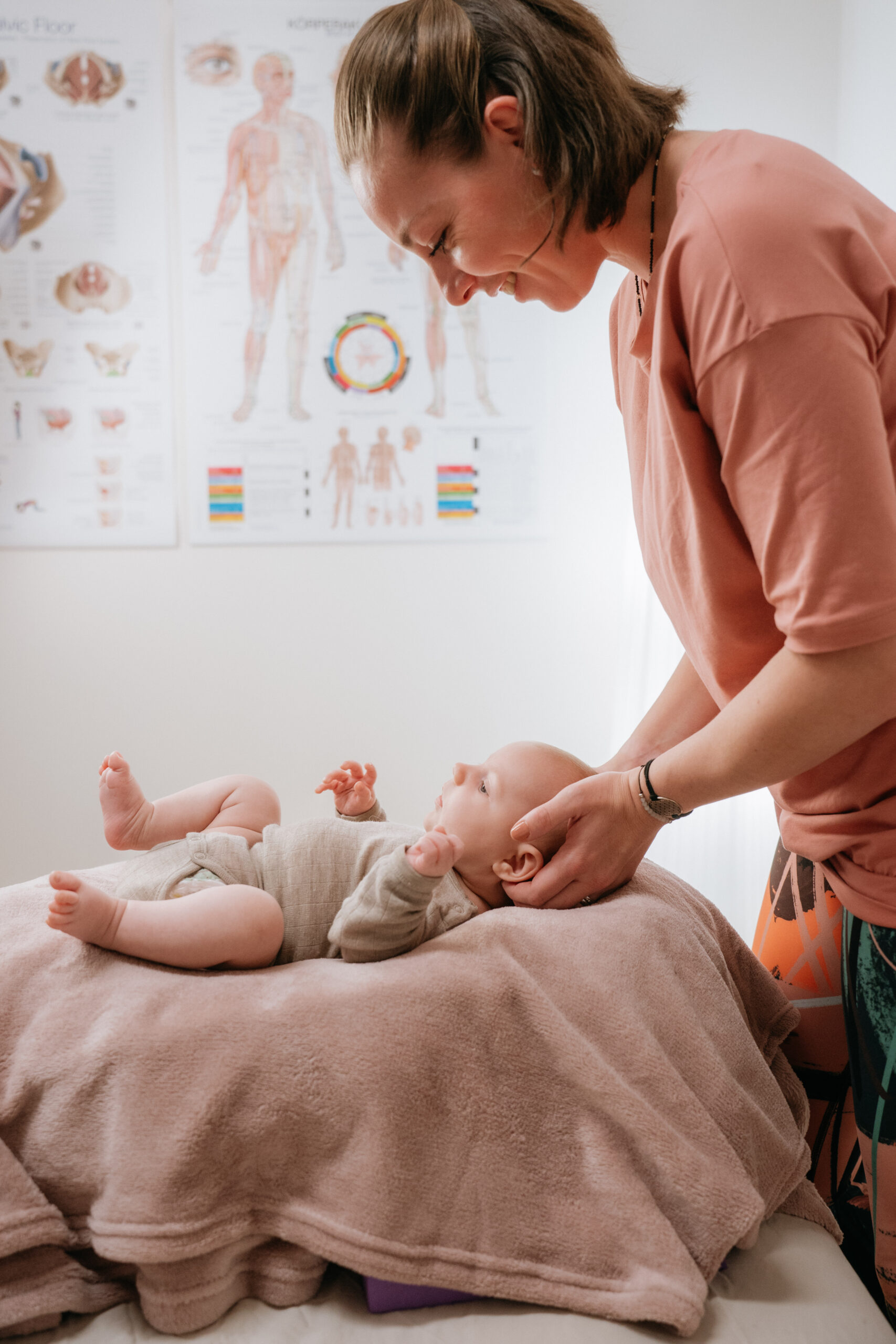 – osové blokády u miminek, potíže se sáním, kojením, asymetrie, „bolesti bříška“